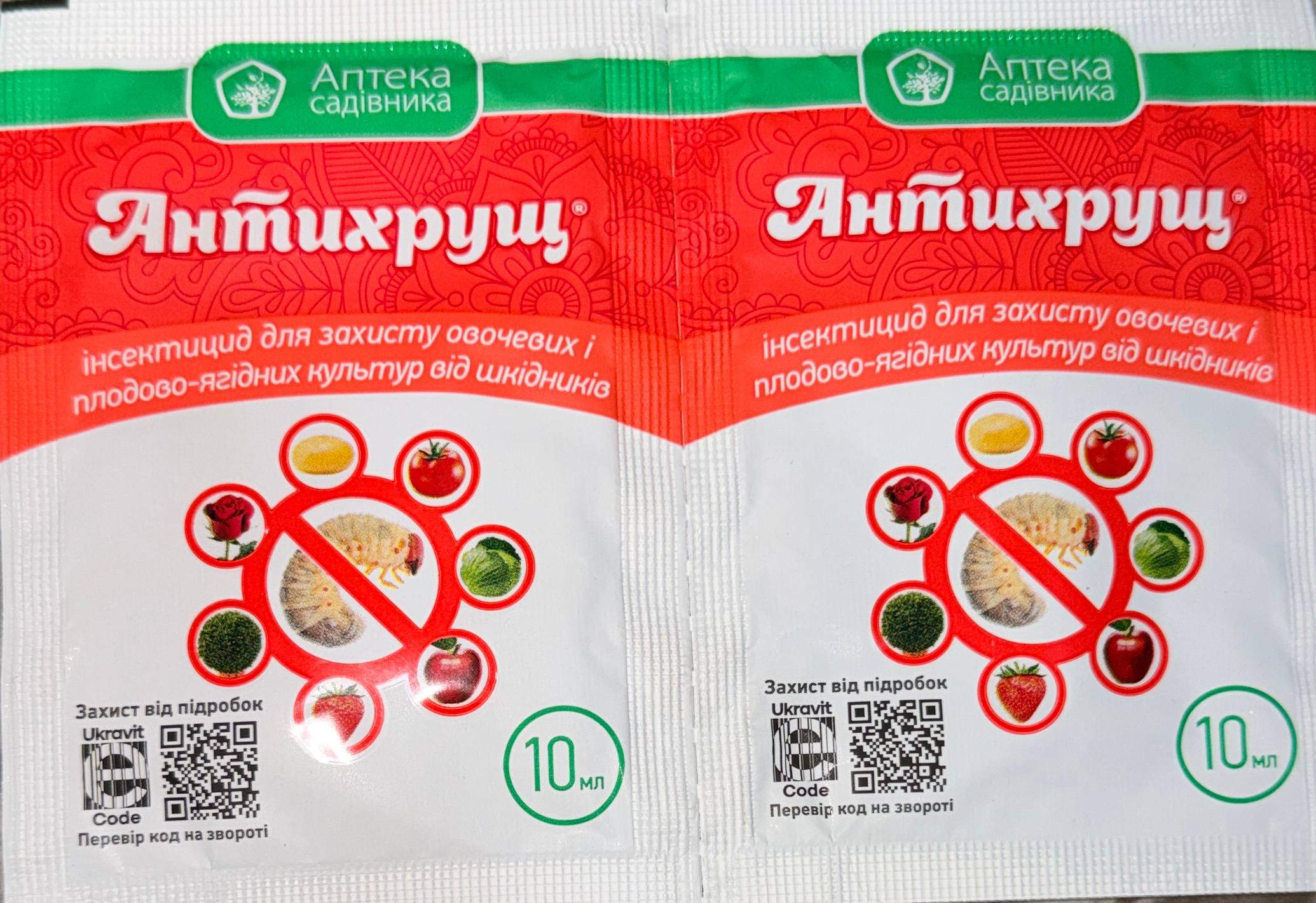 Антихрущ — інсектицид для боротьби з личинками хруща та іншими обґрунтованими шкідниками, які підгризають кореневу систему і можуть «вбити» кущ без видимих причин.