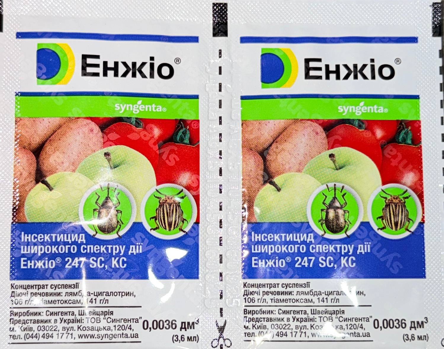 Енжіо — це двокомпонентний інсектицид: одна діюча речовина надходить у рослину (системна дія), друга діє миттєво при контакті. Результат — шкідник гине швидко і надовго.