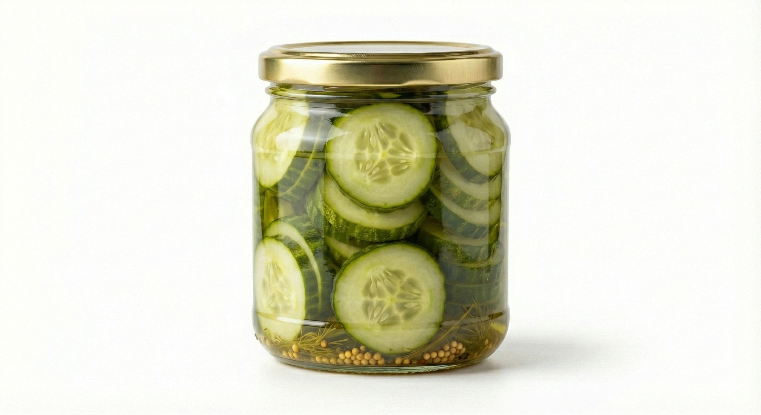 дрібні огірки, вода, сіль, цукор, оцет, чорний та духмяний перець, прянощіб, діжонська гірчиця, куркума.